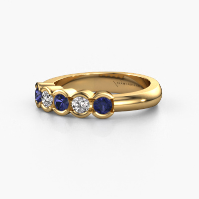 Lotte 5 est le nom que nous avons donné à cette bague. Cette bague forgée en or jaune 14 Carat est sertie d'un saphir d'une de 3 mm. Vous recherchez une bague forgée en or jaune unique et au look modernes ? Voici donc une belle bague que vous pouvez aussi ajuster à votre goût. Parfait pour une femmes contemporaine et modernes ! Un beau saphir est incorporé à cette bague 5 pierres. Celui-ci est sélectionné avec soin, car seules les plus belles pierres précieuses de votre bague peuvent la briller. Notre orfèvre fabrique votre bague dans notre propre atelier et place le saphir dans l'anneau avec une précision extrême. Donc, la bague est travaillée et polie jusqu'à ce que le résultat soit visible : la bague parfaite !En combinant les dernières techniques modernes, associées à une fabrication ancienne, nous sommes en mesure de fabriquer nos bagues dans notre propre studio. Chaque bijou est fabriqué sur commande. Ceci est avantageux car nous sommes en mesure de vous proposer un prix que vous ne trouverez nulle part ailleurs.Notre équipe de designers talentueux et passionnés ajoute chaque jour de nouveaux modèles bagues à notre collection en ligne. Notre objectif est de pouvoir vous offrir une grande variété de bijoux. N'hésitez pas à demander un devis si vous avez des souhaits spécifiques pour votre bague. Nous garantissons de vous faire une offre que vous ne pourrez pas refuser.Pour vous faciliter la tâche, vous pouvez facilement nous retourner tout bijou commandé dans les 30 jours suivant la livraison.