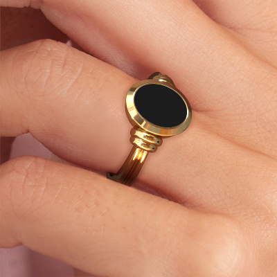 Cette chevalière Brenda 1 forgée en or jaune digne de ce nom est une superbe bague sertie d'un émail noir. Pour certaines personnes, une chevalière est un bel accessoire de mode, mais elle convient aussi tout particulièrement à un bijou qui aurait un sens. Une chevalière comme celle-ci peut être portée tous les jours et peut être facilement combinée avec différents styles. C'est la raison pour laquelle créer une chevalière qui a un sens généreux pour vous est un travail magnifique. Vous vous rappellerez à chaque loyautés que vous regarderez cette chevalière d'une personne de valeur qui compte pour vous ou qui vous tient à cœur. Du souvenir d'un moment ou d'une journée spéciale. Des souvenirs que l'on peut chérir et revivre dans cette bague. La beauté réside aussi dans le fait que les brillants ériaux utilisés, le métal précieux et les pierres précieuses, sont également destinés à durer toute une vie. Et ainsi, de précieux souvenirs peuvent également être portés toute une vie !Nos orfèvres fabriquent votre chevalière sur mesure, à votre goût et avec beaucoup de passion et de soin. Le or jaune chevalière comme indiqué ici peut être ajusté à votre guise avec l'outil de configuration. Si vous avez des idées que vous ne pouvez pas appliquer avec l'outil de configuration, vous pouvez toujours les partager à nos créateurs de bijoux. Vous pouvez bien sûr toujours nous poser des questions.Nos orfèvres ne fabriqueront votre bague qu'une fois que vous l'aurez commandée. Nous ne faisons pas de stock. L'avantage de cela est que nous n'avons pas à inclure les frais de stockage dans nos prix, et nous pouvons donc vous offrir des bijoux à un prix très bas.Pour vous faciliter la tâche, vous pouvez facilement nous retourner tout bijou commandé dans les 30 jours suivant la livraison.Maintenant, il est toujours possible que vous ayez encore des questions, par exemple sur la configuration. Ou si vous avez certains souhait, n'hésitez pas à nous contacter. Nous serons heureux de vous aider avec la composition de votre bague meilleurs prix Brenda 1 !