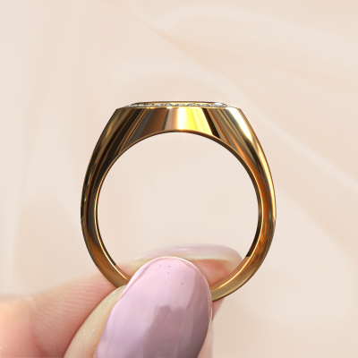 Cette chevalière Hilda 2 forgée en or jaune digne de ce nom est une superbe bague sertie d'un héliotrope. Pour certaines personnes, une chevalière est un bel accessoire de mode, mais elle convient aussi tout particulièrement à un bijou qui aurait un sens. Une chevalière comme celle-ci peut être portée tous les jours et peut être facilement combinée avec différents styles. C'est la raison pour laquelle créer une chevalière qui a un sens généreux pour vous est un travail magnifique. Vous vous rappellerez à chaque loyautés que vous regarderez cette chevalière d'une personne de valeur qui compte pour vous ou qui vous tient à cœur. Du souvenir d'un moment ou d'une journée spéciale. Des souvenirs que l'on peut chérir et revivre dans cette bague. La beauté réside aussi dans le fait que les brillants ériaux utilisés, le métal précieux et les pierres précieuses, sont également destinés à durer toute une vie. Et ainsi, de précieux souvenirs peuvent également être portés toute une vie !Nos orfèvres fabriquent votre chevalière sur mesure, à votre goût et avec beaucoup de passion et de soin. Le or jaune chevalière comme indiqué ici peut être ajusté à votre guise avec l'outil de configuration. Si vous avez des idées que vous ne pouvez pas appliquer avec l'outil de configuration, vous pouvez toujours les partager à nos créateurs de bijoux. Vous pouvez bien sûr toujours nous poser des questions.Nos orfèvres ne fabriqueront votre bague qu'une fois que vous l'aurez commandée. Nous ne faisons pas de stock. L'avantage de cela est que nous n'avons pas à inclure les frais de stockage dans nos prix, et nous pouvons donc vous offrir des bijoux à un prix très bas.Pour vous faciliter la tâche, vous pouvez facilement nous retourner tout bijou commandé dans les 30 jours suivant la livraison.Maintenant, il est toujours possible que vous ayez encore des questions, par exemple sur la configuration. Ou si vous avez certains souhait, n'hésitez pas à nous contacter. Nous serons heureux de vous aider avec la composition de votre bague meilleurs prix Hilda 2 !