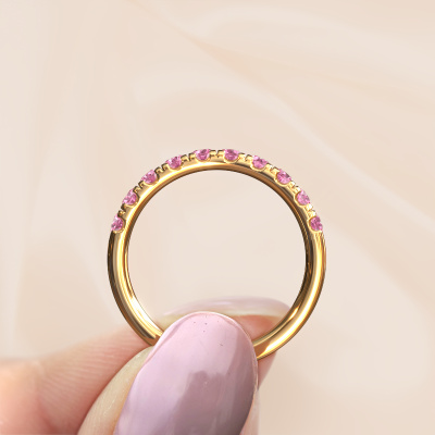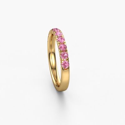 Jackie Half est le nom que nous avons donné à cette bague superposable. Cette bague superposable forgée en or jaune 14 Carat est sertie d'un saphir rose d'une de 2.4 mm. Vous recherchez une bague superposable forgée en or jaune unique et au look modernes ? Voici donc une belle bague que vous pouvez aussi ajuster à votre goût. Parfait pour une femmes contemporaine et modernes ! Un beau saphir rose est incorporé à cette bague superposable memoire. Celui-ci est sélectionné avec soin, car seules les plus belles pierres précieuses de votre bague superposable peuvent la briller. Notre orfèvre fabrique votre bague superposable dans notre propre atelier et place le saphir rose dans l'anneau avec une précision extrême. Donc, la bague est travaillée et polie jusqu'à ce que le résultat soit visible : la bague parfaite !En combinant les dernières techniques modernes, associées à une fabrication ancienne, nous sommes en mesure de fabriquer nos bagues dans notre propre studio. Chaque bijou est fabriqué sur commande. Ceci est avantageux car nous sommes en mesure de vous proposer un prix que vous ne trouverez nulle part ailleurs.De nouveaux modèles de bijoux sont ajoutés à notre collection en ligne quotidiennement. Notre équipe de designers passionnés s'efforce de créer des designs extraordinaires et variés. Avez-vous vu une bague qui vous plait ? N'hésitez pas à nous contacter. Grâce à un bon rapport qualité / prix, nous vous ferons une offre que vous ne pourrez pas refuser !Pour vous faciliter la tâche, vous pouvez facilement nous retourner tout bijou commandé dans les 30 jours suivant la livraison.