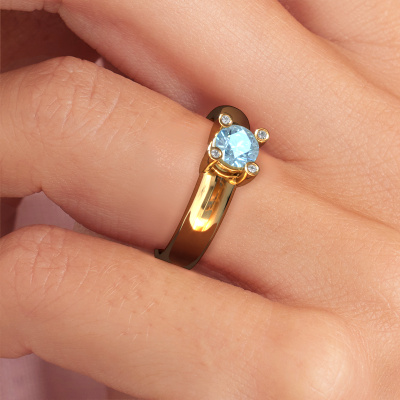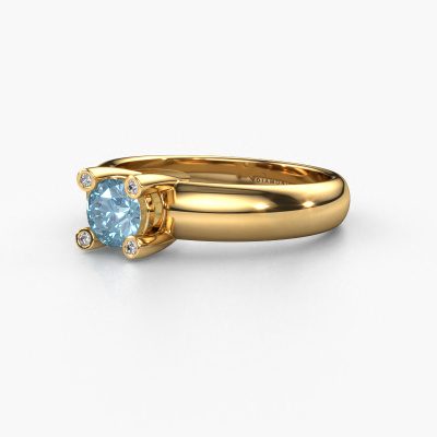 Comment décririez-vous votre propre style ? Aimez-vous quelque chose de différent de l'habituel ? Cette bague forgée en or jaune brillantes est une bague magnifique que vous pouvez ajuster à votre goût. Le diamant synthétique bleu est serti dans cette bague. Ces diamant synthétique bleu ont été soigneusement sélectionnés, car nous pensons que seules les plus belles pierres précieuses doivent briller sur votre bague, n'est-ce pas ? Notre orfèvre fabrique votre bague, en bas, dans notre propre atelier et place le diamant synthétique bleu sur la bague avec une précision extrême. La bague est Donc travaillée et polie jusqu'à ce que le résultat soit visible : une bague parfaite, qui témoigne le goût d'une femmes !
