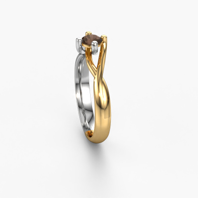 Paulien est le nom que nous avons donné à cette bague. Cette bague forgée en or jaune 14 Carat est sertie d'un quartz fumé d'une de 4.2 mm. Vous recherchez une bague forgée en or jaune unique et au look fantaisie ? Voici donc une belle bague que vous pouvez aussi ajuster à votre goût. Parfait pour une femmes contemporaine et fantaisie ! Un beau quartz fumé est incorporé à cette bague spéciales. Celui-ci est sélectionné avec soin, car seules les plus belles pierres précieuses de votre bague peuvent la briller. Notre orfèvre fabrique votre bague dans notre propre atelier et place le quartz fumé dans l'anneau avec une précision extrême. Donc, la bague est travaillée et polie jusqu'à ce que le résultat soit visible : la bague parfaite !Nos orfèvres ne fabriqueront votre bague qu'une fois que vous l'aurez commandée. Nous ne faisons pas de stock. L'avantage de cela est que nous n'avons pas à inclure les frais de stockage dans nos prix, et nous pouvons donc vous offrir des bijoux à un prix très bas.
