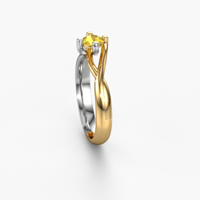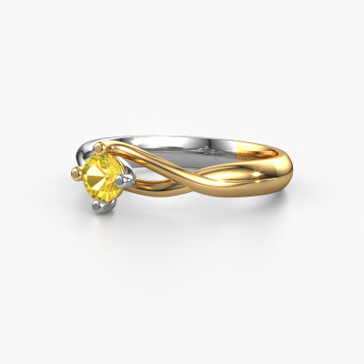 Paulien est le nom que nous avons donné à cette bague. Cette bague forgée en or jaune 14 Carat est sertie d'un saphir jaune d'une de 4.2 mm. Vous recherchez une bague forgée en or jaune unique et au look fantaisie ? Voici donc une belle bague que vous pouvez aussi ajuster à votre goût. Parfait pour une femmes contemporaine et fantaisie ! Un beau saphir jaune est incorporé à cette bague spéciales. Celui-ci est sélectionné avec soin, car seules les plus belles pierres précieuses de votre bague peuvent la briller. Notre orfèvre fabrique votre bague dans notre propre atelier et place le saphir jaune dans l'anneau avec une précision extrême. Donc, la bague est travaillée et polie jusqu'à ce que le résultat soit visible : la bague parfaite !Nos orfèvres ne fabriqueront votre bague qu'une fois que vous l'aurez commandée. Nous ne faisons pas de stock. L'avantage de cela est que nous n'avons pas à inclure les frais de stockage dans nos prix, et nous pouvons donc vous offrir des bijoux à un prix très bas.