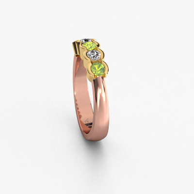 Lotte 5 est le nom que nous avons donné à cette bague. Cette bague forgée en or rose 14 Carat est sertie d'un péridot d'une de 3 mm. Vous recherchez une bague forgée en or rose unique et au look modernes ? Voici donc une belle bague que vous pouvez aussi ajuster à votre goût. Parfait pour une femmes contemporaine et modernes ! Un beau péridot est incorporé à cette bague 5 pierres. Celui-ci est sélectionné avec soin, car seules les plus belles pierres précieuses de votre bague peuvent la briller. Notre orfèvre fabrique votre bague dans notre propre atelier et place le péridot dans l'anneau avec une précision extrême. Donc, la bague est travaillée et polie jusqu'à ce que le résultat soit visible : la bague parfaite !En combinant les dernières techniques modernes, associées à une fabrication ancienne, nous sommes en mesure de fabriquer nos bagues dans notre propre studio. Chaque bijou est fabriqué sur commande. Ceci est avantageux car nous sommes en mesure de vous proposer un prix que vous ne trouverez nulle part ailleurs.Notre équipe de designers talentueux et passionnés ajoute chaque jour de nouveaux modèles bagues à notre collection en ligne. Notre objectif est de pouvoir vous offrir une grande variété de bijoux. N'hésitez pas à demander un devis si vous avez des souhaits spécifiques pour votre bague. Nous garantissons de vous faire une offre que vous ne pourrez pas refuser.Pour vous faciliter la tâche, vous pouvez facilement nous retourner tout bijou commandé dans les 30 jours suivant la livraison.