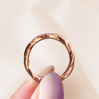 Swing half est le nom que nous avons donné à cette bague superposable. Cette bague superposable forgée en or rose 14 Carat est sertie d'un Rainbow saphir 1 d'une de 1 mm. Vous recherchez une bague superposable forgée en or rose unique et au look fantaisie ? Voici donc une belle bague que vous pouvez aussi ajuster à votre goût. Parfait pour une femmes contemporaine et fantaisie ! Un beau Rainbow saphir 1 est incorporé à cette bague superposable memoire. Celui-ci est sélectionné avec soin, car seules les plus belles pierres précieuses de votre bague superposable peuvent la briller. Notre orfèvre fabrique votre bague superposable dans notre propre atelier et place le Rainbow saphir 1 dans l'anneau avec une précision extrême. Donc, la bague est travaillée et polie jusqu'à ce que le résultat soit visible : la bague parfaite !En combinant les dernières techniques modernes, associées à une fabrication ancienne, nous sommes en mesure de fabriquer nos bagues dans notre propre studio. Chaque bijou est fabriqué sur commande. Ceci est avantageux car nous sommes en mesure de vous proposer un prix que vous ne trouverez nulle part ailleurs.De nouveaux modèles de bijoux sont ajoutés à notre collection en ligne quotidiennement. Notre équipe de designers passionnés s'efforce de créer des designs extraordinaires et variés. Avez-vous vu une bague qui vous plait ? N'hésitez pas à nous contacter. Grâce à un bon rapport qualité / prix, nous vous ferons une offre que vous ne pourrez pas refuser !Pour vous faciliter la tâche, vous pouvez facilement nous retourner tout bijou commandé dans les 30 jours suivant la livraison.