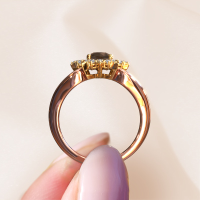 Comment décririez-vous votre propre style ? Aimez-vous quelque chose de différent de l'habituel ? Cette bague forgée en or rose royaux est une bague magnifique que vous pouvez ajuster à votre goût. Le quartz fumé est serti dans cette bague. Ces quartz fumé ont été soigneusement sélectionnés, car nous pensons que seules les plus belles pierres précieuses doivent briller sur votre bague, n'est-ce pas ? Notre orfèvre fabrique votre bague, en bas, dans notre propre atelier et place le quartz fumé sur la bague avec une précision extrême. La bague est Donc travaillée et polie jusqu'à ce que le résultat soit visible : une bague parfaite, qui témoigne le goût d'une femmes ! Que pensez-vous de cette bague exclusives en or rose ? Vous pouvez créer cette bague via notre configurateur. Votre bague personnelle est par la suite fabriquée à la main par nos orfèvres. Le choix du métal précieux et des pierres précieuses peut être entièrement personnalisé. Avez-vous certaines idées pour votre bague, mais vous ne pouvez pas trouver nos options qui leur correspondent ? Alors faites-nous le savoir. Nous fabriquons votre bague personnelle entièrement selon vos souhaits.En combinant les dernières techniques modernes, associées à une fabrication ancienne, nous sommes en mesure de fabriquer nos bagues dans notre propre studio. Chaque bijou est fabriqué sur commande. Ceci est avantageux car nous sommes en mesure de vous proposer un prix que vous ne trouverez nulle part ailleurs.Pour vous faciliter la tâche, vous pouvez facilement nous retourner tout bijou commandé dans les 30 jours suivant la livraison. Êtes-vous prête à donner vie à votre souhait avec cette bague Chasidy 1 exclusives ? Ou peut-être avez-vous encore des questions ? Dans ce cas dites-le nous. L'équipe DiamondsByMe est prête pour vous aider !