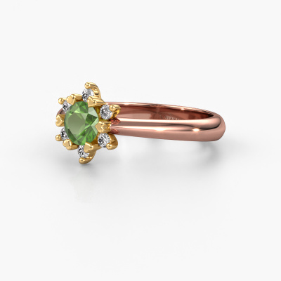 Comment décririez-vous votre propre style ? Aimez-vous quelque chose de différent de l'habituel ? Cette bague forgée en or rose flower est une bague magnifique que vous pouvez ajuster à votre goût. Le vert tourmaline est serti dans cette bague. Ces vert tourmaline ont été soigneusement sélectionnés, car nous pensons que seules les plus belles pierres précieuses doivent briller sur votre bague, n'est-ce pas ? Notre orfèvre fabrique votre bague, en bas, dans notre propre atelier et place le vert tourmaline sur la bague avec une précision extrême. La bague est Donc travaillée et polie jusqu'à ce que le résultat soit visible : une bague parfaite, qui témoigne le goût d'une femmes ! Une fois que vous avez conçu votre bague Liesbeth avec notre configurateur, nos orfèvres se mettent à sa fabrication pour vous. La fabrication se fait de manière traditionnelle avec passion et soin. De plus, nous travaillons avec des matériaux extraits de façon équitable. Si vous voulez changer quelque chose, vous pouvez le faire avec notre configurateur. Si vous avez des souhaits spécifiques pour votre bague Liesbeth, mais si vous ne voyez pas une option qui leur corresponde dans le configurateur, veuillez contacter notre équipe de designers expérimentés.En utilisant nos techniques modernes, nous sommes en mesure de concevoir et de personnaliser les bijoux de la plus haute qualité avec le plus grand soin pour vous. Nos bagues ont toujours un prix inférieur de 30% à celles des autres bijoutiers. Nous fabriquons des bagues à la commande afin de ne pas avoir à garder un stock important. Si vous avez un certain budget, nous serons ravis de vous conseiller tout en le respectant.Pour vous faciliter la tâche, vous pouvez facilement nous retourner tout bijou commandé dans les 30 jours suivant la livraison. Êtes-vous prête à donner vie à votre souhait avec cette bague Liesbeth classiques ? Ou peut-être avez-vous encore des questions ? Dans ce cas dites-le nous. L'équipe DiamondsByMe est prête pour vous aider !