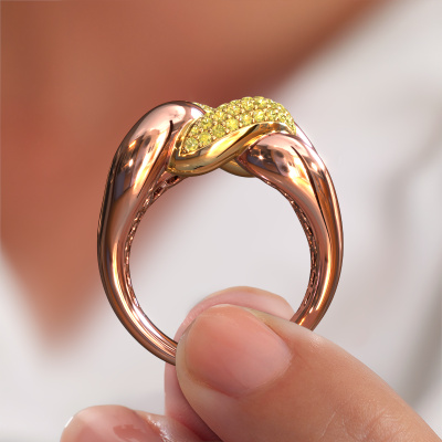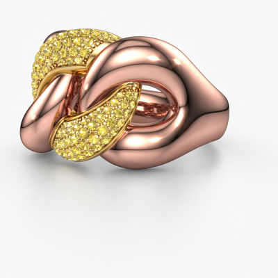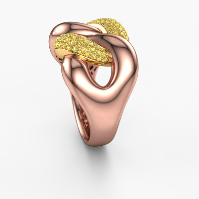 Cette bague unique forgée en or rose, que nous avons appelée Kylie 2 15mm, est un pur travail d’art ! La bague est faite d'or 14 Carat et est sertie d'un saphir jaune ronds de 0.8 mm. Les plus petits détails ont été fabriqués avec beaucoup de patience et de passion par notre orfèvre. Ce véritable travail artisanal nécessite un œil expert et une main compétente pour concevoir une bague avec la plus grande précision. Et c'est précisément ce qui enthousiasme nos orfèvres ! Les beaux saphirs jaunes sont mis en place de manière spéciale, de telle sorte à ce qu'ils sortent encore mieux. Cela donne aux bagues pour femmes une allure supplémentaire. La bague est unique en raison de la pierre précieuse naturelle que nous avons spécialement sélectionnée pour cette bague Kylie 2 15mm. Et en choisissant votre métal précieux, vous pouvez créer vous-même une bague unique. La meilleure partie concernant ces bague gracieuses est que vous pouvez les personnaliser à votre guise. Votre style, votre choix, vos bague. De plus, vos bague design en or rose seront fabriquées à la main avec des matériaux honnêtes!Nos orfèvres ne fabriqueront votre bague qu'une fois que vous l'aurez commandée. Nous ne faisons pas de stock. L'avantage de cela est que nous n'avons pas à inclure les frais de stockage dans nos prix, et nous pouvons donc vous offrir des bijoux à un prix très bas.Pour vous faciliter la tâche, vous pouvez facilement nous retourner tout bijou commandé dans les 30 jours suivant la livraison. Avez-vous des questions ? Souhaitez-vous modifier un design existant avec vos propres idées ? Vous nous donc aussi contacterez. Notre équipe de professionnels se fera un plaisir de vous conseiller dans la création de votre bijou de rêve style design.