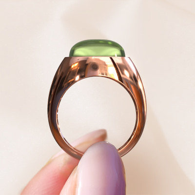 Sur la photo, vous pouvez voir la bague forgée en or rose Laurien avec un cabochon péridot. Cabochon signifie que le péridot est d'abord affûté en une forme spécifique, telle que la forme d'une goutte, d'un cœur ou une forme cabochon ovale. Puis que des couches sont coupées du haut de la pierre jusqu'à ce que la pierre ait une belle forme convexe. Un bijou avec une pierre précieuse taillée en cabochon est magnifique, attire élégamment tous les regards et correspond parfaitement à un style modernes et plus encore à un style vintage. Votre bague à la mode est finalisée dans les moindres détails par nos orfèvres jusqu'à la création de votre bague unique, dans laquelle le péridot cabochon prend tout son sens. La meilleure partie concernant ces bague gracieuses est que vous pouvez les personnaliser à votre guise. Votre style, votre choix, vos bague. De plus, vos bague modernes en or rose seront fabriquées à la main avec des matériaux honnêtes! Vous pouvez également graver votre bague. DiamondsByMe se fera un plaisir de le faire pour vous ! En combinant les dernières techniques modernes, associées à une fabrication ancienne, nous sommes en mesure de fabriquer nos bagues dans notre propre studio. Chaque bijou est fabriqué sur commande. Ceci est avantageux car nous sommes en mesure de vous proposer un prix que vous ne trouverez nulle part ailleurs.Pour vous faciliter la tâche, vous pouvez facilement nous retourner tout bijou commandé dans les 30 jours suivant la livraison. Vous pouvez bien entendu toujours nous contacter si vous avez besoin de notre aide pour créer votre bague personnelle Laurien à la mode !