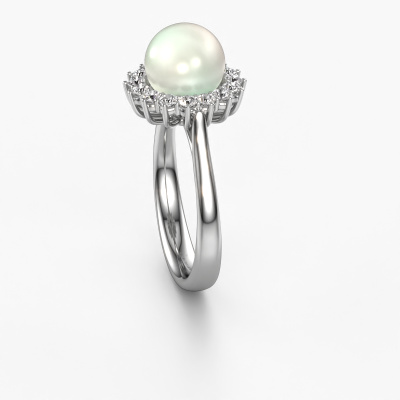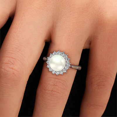 La bague ci-dessus porte le nom Akiko, ce type de bague est appelée bague perle. Ainsi, autour de la pierre centrale et dans un sertissage ouvert se trouvent de toutes petites pierres précieuses. Cette bague forgée en platine a un perle blanche sphérique de 8 mm comme pierre centrale, entourée de petits diamants synthétiques. Ce qui fait la particularité de cette bague perle classiques forgée en platine pour femmes sont les pierres précieuses plus petites qui sont serties autour du gros perle blanche central sous la forme d’une belle fleur. Cela donne l'copie de former une grosse pierre précieuse étincelante. Un autre nom pour cette bague est aussi la bague fleur ou la bague rosette. De plus, de petits perles blanches doivent tous être placés de la même manière, afin que la lumière passant au travers sur perle blanche ne soit pas interrompue et qu'une belle unité soit effectivement créée. Et voici ce que font nos maîtres orfèvres. Avec la plus grande précision, chaque perle blanche soigneusement sélectionné est placé à la main dans la bague. Toujours et encore, la bague est passée à la loupe pour voir si l'effet spécial est encore visible. Le résultat est une bague unique, où le perle blanche choisi devient littéralement le centre [finish_plural]. Vous pouvez imaginer que cette bague est vraiment une bague avec une signification spéciale que vous pouvez offrir à l'amour de votre vie ! Le jour où vous montrez qu'elle est votre centre [finish_plural] ! Ce bijou est fabriquées spécialement pour vous par nos maîtres orfèvres dans notre propre atelier.Nos orfèvres ne fabriqueront votre bague qu'une fois que vous l'aurez commandée. Nous ne faisons pas de stock. L'avantage de cela est que nous n'avons pas à inclure les frais de stockage dans nos prix, et nous pouvons donc vous offrir des bijoux à un prix très bas.