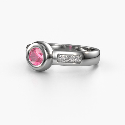 Charlotte Round est le nom que nous avons donné à cette bague. Cette bague forgée en or blanc 14 Carat est sertie d'un saphir rose. Vous recherchez une Bague forgée en or blanc unique et avec un look modernes ? Voici donc une belle bague que vous pouvez aussi ajuster à votre goût. Parfait donc pour une femmes contemporaine et modernes ! Un magnifique saphir rose est serti dans cette bague pierre précieuses. Celui-ci est sélectionné avec soin, car seules les plus belles pierres précieuses de votre bague peuvent la faire briller. Notre orfèvre fabrique votre bague dans notre propre atelier et place le saphir rose dans l'anneau avec une précision extrême. Donc, il est travaillé et poli jusqu'à ce que le résultat soit visible : la bague parfaite ! En combinant les dernières techniques modernes, associées à une fabrication ancienne, nous sommes en mesure de fabriquer nos bagues dans notre propre studio. Chaque bijou est fabriqué sur commande. Ceci est avantageux car nous sommes en mesure de vous proposer un prix que vous ne trouverez nulle part ailleurs.Notre équipe de designers talentueux et passionnés ajoute chaque jour de nouveaux modèles bagues à notre collection en ligne. Notre objectif est de pouvoir vous offrir une grande variété de bijoux. N'hésitez pas à demander un devis si vous avez des souhaits spécifiques pour votre bague. Nous garantissons de vous faire une offre que vous ne pourrez pas refuser.Pour vous faciliter la tâche, vous pouvez facilement nous retourner tout bijou commandé dans les 30 jours suivant la livraison.Nous sommes curieux de savoir comment vous allez personnaliser votre bague Charlotte Round. Si quelque chose ne vous semble pas tout à fait clair, vous pouvez toujours nous contacter. Nous serons heureux de vous aider !
