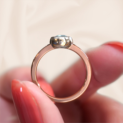 Charlotte Round est le nom que nous avons donné à cette bague. Cette bague forgée en or rose 14 Carat est sertie d'un aigue-marine. Vous recherchez une Bague forgée en or rose unique et avec un look modernes ? Voici donc une belle bague que vous pouvez aussi ajuster à votre goût. Parfait donc pour une femmes contemporaine et modernes ! Un magnifique aigue-marine est serti dans cette bague pierre précieuses. Celui-ci est sélectionné avec soin, car seules les plus belles pierres précieuses de votre bague peuvent la faire briller. Notre orfèvre fabrique votre bague dans notre propre atelier et place le aigue-marine dans l'anneau avec une précision extrême. Donc, il est travaillé et poli jusqu'à ce que le résultat soit visible : la bague parfaite ! En combinant les dernières techniques modernes, associées à une fabrication ancienne, nous sommes en mesure de fabriquer nos bagues dans notre propre studio. Chaque bijou est fabriqué sur commande. Ceci est avantageux car nous sommes en mesure de vous proposer un prix que vous ne trouverez nulle part ailleurs.Notre équipe de designers talentueux et passionnés ajoute chaque jour de nouveaux modèles bagues à notre collection en ligne. Notre objectif est de pouvoir vous offrir une grande variété de bijoux. N'hésitez pas à demander un devis si vous avez des souhaits spécifiques pour votre bague. Nous garantissons de vous faire une offre que vous ne pourrez pas refuser.Pour vous faciliter la tâche, vous pouvez facilement nous retourner tout bijou commandé dans les 30 jours suivant la livraison.Nous sommes curieux de savoir comment vous allez personnaliser votre bague Charlotte Round. Si quelque chose ne vous semble pas tout à fait clair, vous pouvez toujours nous contacter. Nous serons heureux de vous aider !