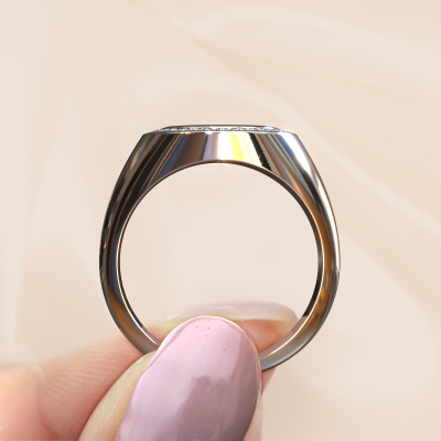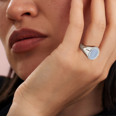 Cette chevalière Hilda 2 forgée en platine digne de ce nom est une superbe bague sertie d'un nicolo bleu clair. Pour certaines personnes, une chevalière est un bel accessoire de mode, mais elle convient aussi tout particulièrement à un bijou qui aurait un sens. Une chevalière comme celle-ci peut être portée tous les jours et peut être facilement combinée avec différents styles. C'est la raison pour laquelle créer une chevalière qui a un sens généreux pour vous est un travail magnifique. Vous vous rappellerez à chaque loyautés que vous regarderez cette chevalière d'une personne de valeur qui compte pour vous ou qui vous tient à cœur. Du souvenir d'un moment ou d'une journée spéciale. Des souvenirs que l'on peut chérir et revivre dans cette bague. La beauté réside aussi dans le fait que les brillants ériaux utilisés, le métal précieux et les pierres précieuses, sont également destinés à durer toute une vie. Et ainsi, de précieux souvenirs peuvent également être portés toute une vie !Nos orfèvres fabriquent votre chevalière sur mesure, à votre goût et avec beaucoup de passion et de soin. Le platine chevalière comme indiqué ici peut être ajusté à votre guise avec l'outil de configuration. Si vous avez des idées que vous ne pouvez pas appliquer avec l'outil de configuration, vous pouvez toujours les partager à nos créateurs de bijoux. Vous pouvez bien sûr toujours nous poser des questions.Nos orfèvres ne fabriqueront votre bague qu'une fois que vous l'aurez commandée. Nous ne faisons pas de stock. L'avantage de cela est que nous n'avons pas à inclure les frais de stockage dans nos prix, et nous pouvons donc vous offrir des bijoux à un prix très bas.Pour vous faciliter la tâche, vous pouvez facilement nous retourner tout bijou commandé dans les 30 jours suivant la livraison.Maintenant, il est toujours possible que vous ayez encore des questions, par exemple sur la configuration. Ou si vous avez certains souhait, n'hésitez pas à nous contacter. Nous serons heureux de vous aider avec la composition de votre bague meilleurs prix Hilda 2 !