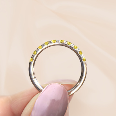Jackie Half est le nom que nous avons donné à cette bague superposable. Cette bague superposable forgée en platine est sertie d'un saphir jaune d'une de 2.4 mm. Vous recherchez une bague superposable forgée en platine unique et au look modernes ? Voici donc une belle bague que vous pouvez aussi ajuster à votre goût. Parfait pour une femmes contemporaine et modernes ! Un beau saphir jaune est incorporé à cette bague superposable memoire. Celui-ci est sélectionné avec soin, car seules les plus belles pierres précieuses de votre bague superposable peuvent la briller. Notre orfèvre fabrique votre bague superposable dans notre propre atelier et place le saphir jaune dans l'anneau avec une précision extrême. Donc, la bague est travaillée et polie jusqu'à ce que le résultat soit visible : la bague parfaite !En combinant les dernières techniques modernes, associées à une fabrication ancienne, nous sommes en mesure de fabriquer nos bagues dans notre propre studio. Chaque bijou est fabriqué sur commande. Ceci est avantageux car nous sommes en mesure de vous proposer un prix que vous ne trouverez nulle part ailleurs.De nouveaux modèles de bijoux sont ajoutés à notre collection en ligne quotidiennement. Notre équipe de designers passionnés s'efforce de créer des designs extraordinaires et variés. Avez-vous vu une bague qui vous plait ? N'hésitez pas à nous contacter. Grâce à un bon rapport qualité / prix, nous vous ferons une offre que vous ne pourrez pas refuser !Pour vous faciliter la tâche, vous pouvez facilement nous retourner tout bijou commandé dans les 30 jours suivant la livraison.