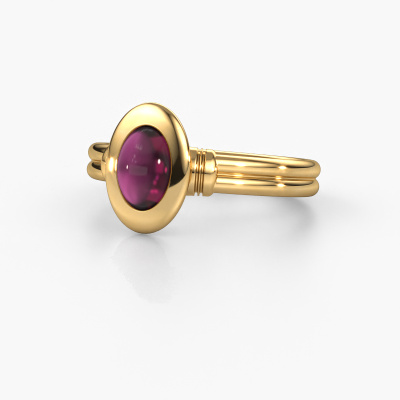 Sur la photo, vous pouvez voir la bague forgée en or jaune Brittni avec un cabochon rhodolite. Cabochon signifie que le rhodolite est d'abord affûté en une forme spécifique, telle que la forme d'une goutte, d'un cœur ou une forme cabochon ovale. Puis que des couches sont coupées du haut de la pierre jusqu'à ce que la pierre ait une belle forme convexe. Un bijou avec une pierre précieuse taillée en cabochon est magnifique, attire élégamment tous les regards et correspond parfaitement à un style fantaisie et plus encore à un style vintage. Votre bague de bon goût est finalisée dans les moindres détails par nos orfèvres jusqu'à la création de votre bague unique, dans laquelle le rhodolite cabochon prend tout son sens. Nos orfèvres fabriquent votre bague sur mesure, à votre goût et avec beaucoup de passion et de soin. Le or jaune bague comme indiqué ici peut être ajusté à votre guise avec l'outil de configuration. Si vous avez des idées que vous ne pouvez pas appliquer avec l'outil de configuration, vous pouvez toujours les partager à nos créateurs de bijoux. Vous pouvez bien sûr toujours nous poser des questions. Vous pouvez également graver votre bague. DiamondsByMe se fera un plaisir de le faire pour vous ! Puisque nous concevons et livrons nos propres bijoux, nous sommes en mesure de vous proposer une bague à un prix que vous ne pourrez pas trouver ailleurs. Une alliance est fabriquée sur commande, ce qui permet d'éviter les excédents de matériel et nous permet de vous proposer une superbe offre de prix. Nous comprenons qu'acheter votre bague en ligne soit un risque, mais nous vous assistons volontiers dans le processus de conception, en tenant compte de votre budget.Pour vous faciliter la tâche, vous pouvez facilement nous retourner tout bijou commandé dans les 30 jours suivant la livraison. Vous pouvez bien entendu toujours nous contacter si vous avez besoin de notre aide pour créer votre bague personnelle Brittni de bon goût !