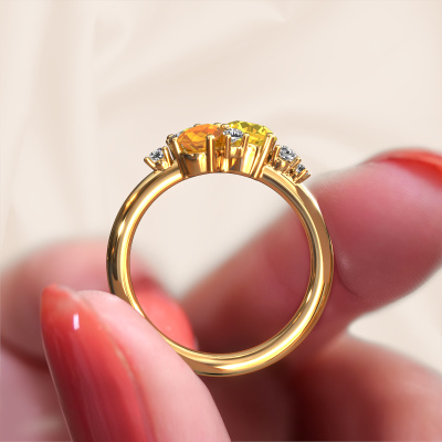 Comment décririez-vous votre propre style ? Aimez-vous quelque chose de différent de l'habituel ? Cette bague forgée en or jaune royaux est une bague magnifique que vous pouvez ajuster à votre goût. Le saphir jaune est serti dans cette bague. Ces saphirs jaunes ont été soigneusement sélectionnés, car nous pensons que seules les plus belles pierres précieuses doivent briller sur votre bague, n'est-ce pas ? Notre orfèvre fabrique votre bague, en bas, dans notre propre atelier et place le saphir jaune sur la bague avec une précision extrême. La bague est Donc travaillée et polie jusqu'à ce que le résultat soit visible : une bague parfaite, qui témoigne le goût d'une femmes ! Nos orfèvres fabriquent votre bague sur mesure, à votre goût et avec beaucoup de passion et de soin. Le or jaune bague comme indiqué ici peut être ajusté à votre guise avec l'outil de configuration. Si vous avez des idées que vous ne pouvez pas appliquer avec l'outil de configuration, vous pouvez toujours les partager à nos créateurs de bijoux. Vous pouvez bien sûr toujours nous poser des questions. Voulez-vous que votre bague Anja royaux soit encore plus personnelle ? Vous pouvez aussi bien sûr la faire graver. Veuillez simplement l'indiquer avec votre commande. En combinant les dernières techniques modernes, associées à une fabrication ancienne, nous sommes en mesure de fabriquer nos bagues dans notre propre studio. Chaque bijou est fabriqué sur commande. Ceci est avantageux car nous sommes en mesure de vous proposer un prix que vous ne trouverez nulle part ailleurs.Pour vous faciliter la tâche, vous pouvez facilement nous retourner tout bijou commandé dans les 30 jours suivant la livraison. Avez-vous encore des questions ? N’hésitez pas à nous contacter. Nos orfèvres seront heureux de vous conseiller sur la création de votre propre bague style contemporain Anja.