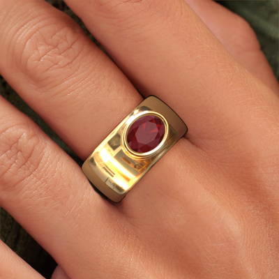 Voulez-vous une bague magnifique et pierre précieuses pour femmes avec une seule pierre précieuse pour attirer tous les regards ? Que pensez-vous de cette bague Anouschka ? La bague Anouschka montrée ici est forgée en or jaune avec un beau rubis ovale de 8x6 mm. Le rubis est soigneusement sélectionné par nos fournisseurs de rubis, puis placé par l'orfèvre dans la bague, conformément à l'artisanat traditionnel. La bague est finie et polie dans les moindres détails jusqu'à ce qu'une bague unique avec un beau rubis ait été créée. Fabriquée spécialement pour vous ! Nos orfèvres fabriquent votre bague sur mesure, à votre goût et avec beaucoup de passion et de soin. Le or jaune bague comme indiqué ici peut être ajusté à votre guise avec l'outil de configuration. Si vous avez des idées que vous ne pouvez pas appliquer avec l'outil de configuration, vous pouvez toujours les partager à nos créateurs de bijoux. Vous pouvez bien sûr toujours nous poser des questions. Si vous voulez faire graver votre bague Anouschka, vous pouvez l'indiquer avec votre commande. Nous nous assurerons que votre bague soit faite à votre goût. En combinant les dernières techniques modernes, associées à une fabrication ancienne, nous sommes en mesure de fabriquer nos bagues dans notre propre studio. Chaque bijou est fabriqué sur commande. Ceci est avantageux car nous sommes en mesure de vous proposer un prix que vous ne trouverez nulle part ailleurs.Pour vous faciliter la tâche, vous pouvez facilement nous retourner tout bijou commandé dans les 30 jours suivant la livraison. Si vous avez des questions, vous pouvez toujours consulter notre foire aux questions. Si vous avez du mal à comprendre quoi que ce soit, ou si vous ne voyez pas la réponse à votre question, veuillez contacter l'équipe DiamondsByMe !