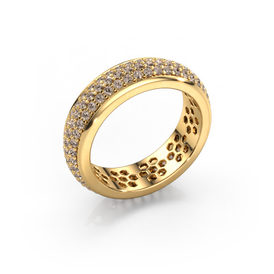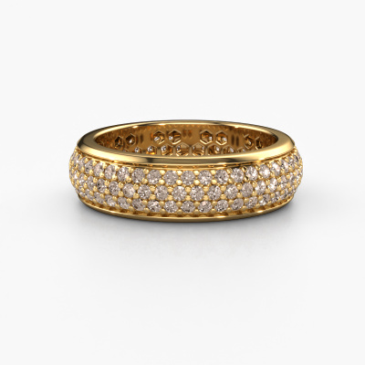 Cette bague porte le nom Tara et le type de bague s'appelle une bague éternité. Par conséquent, toutes les pierres précieuses sont serties autour de l'anneau de la bague. Cette bague forgée en or jaune 14 Carat a tout autour des petits diamants bruns de 1.32 crt. Les diamants bruns brillants sont tous d'identique et sont sertis dans l'anneau autour de la bague. Tous les diamants bruns sont soigneusement sélectionnés, précisément parce qu'ils doivent être aussi identiques que possible pour créer le meilleur résultat possible sur cette bague. Notre orfèvre place tous les diamants bruns très précisément à la main, ce qui permet de renforcer l'effet sertis pavés de la bague. La passion est ce qui anime nos orfèvres : créer la bague parfaite. Voici la beauté de notre métier ! Le résultat est une belle bague forgée en or jaune exclusives dans laquelle la rangée de diamants bruns semble continuer sans fin. Le symbole parfait pour votre amour infini pour elle ! Voici quelque chose de particulier ! Nos orfèvres ne fabriqueront votre bague qu'une fois que vous l'aurez commandée. Nous ne faisons pas de stock. L'avantage de cela est que nous n'avons pas à inclure les frais de stockage dans nos prix, et nous pouvons donc vous offrir des bijoux à un prix très bas.