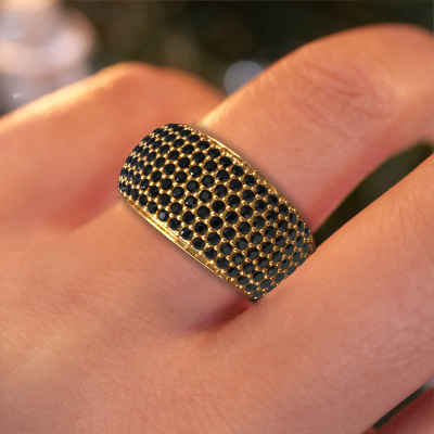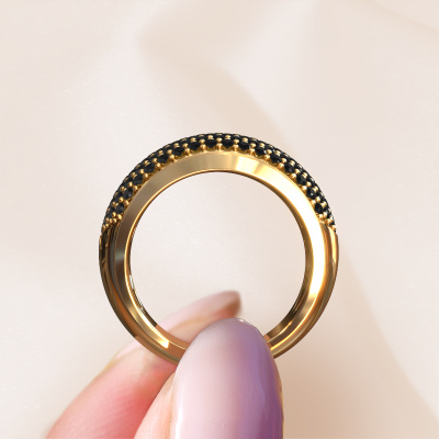 Cette bague Pavé pour femmes porte le nom Kati. Cette bague est forgée en or jaune 14 Carat et est sertie d'un diamants noirs de 1.44 crt. Dans cette bague forgée en or jaune, de magnifiques diamants noirs ont été sertis, comme une rangée infinie faite de diamants noirs. Les pierres précieuses sont soigneusement choisies et serties avec la plus grande précision par notre orfèvre. Parce que ce n'est que lorsque les diamants noirs sont sertis les uns à côté des autres que la bague se mettra à briller. Toujours et encore, au cours du processus traditionnel de forgeage et de polissage, l'orfèvre maintient votre bague à la lumière jusqu'à ce qu'il détienne enfin la bague parfaite pour femmes. Composée par vous et spécialement créé pour vous !La meilleure partie concernant ces bague gracieuses est que vous pouvez les personnaliser à votre guise. Votre style, votre choix, vos bague. De plus, vos bague exclusives en or jaune seront fabriquées à la main avec des matériaux honnêtes!En combinant les dernières techniques modernes, associées à une fabrication ancienne, nous sommes en mesure de fabriquer nos bagues dans notre propre studio. Chaque bijou est fabriqué sur commande. Ceci est avantageux car nous sommes en mesure de vous proposer un prix que vous ne trouverez nulle part ailleurs.Pour vous faciliter la tâche, vous pouvez facilement nous retourner tout bijou commandé dans les 30 jours suivant la livraison.. Si vous avez encore des questions sur l'assemblage de votre bague sertis pavés Kati personnelle, l'équipe DiamondsByMe est prête à vous aider !