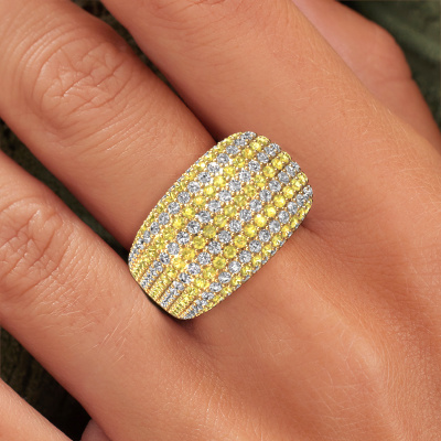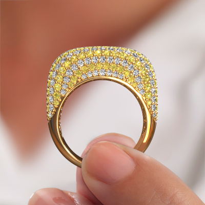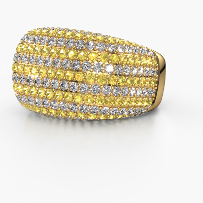 Cette bague forgée en or jaune sertis pavés Kira est une bague magnifique. Un saphir jaune spécial est serti dans la bague. Une bague design qui témoigne d'une femmes avec style. La bague est conçue par nos propres créateurs de bijoux. Parce que dans notre atelier, les techniques les plus innovantes sont combinées avec l'artisanat ancien, nous sommes donc en mesure de finir cette bague dans les moindres détails. Jusqu'à ce que la bague parfaite pour femmes soit créée : un chef-d'œuvre, et c'est ce que nos orfèvres recherchent ! Une bague unique, une correspondance magnifique avec votre propre style. Une bague sur mesure exclusives et gracieuse est le cadeau parfait ! De nouveaux designs exquis sont ajoutés quotidiennement par notre équipe d'orfèvres passionnés. Et chaque design peut être personnalisé. Personnalisez simplement les métaux précieux et la couleur des pierres précieuses qui seront utilisées, par exemple. Cela rendra votre design de bague exclusives kira vraiment unique !En combinant les dernières techniques modernes, associées à une fabrication ancienne, nous sommes en mesure de fabriquer nos bagues dans notre propre studio. Chaque bijou est fabriqué sur commande. Ceci est avantageux car nous sommes en mesure de vous proposer un prix que vous ne trouverez nulle part ailleurs.Pour vous faciliter la tâche, vous pouvez facilement nous retourner tout bijou commandé dans les 30 jours suivant la livraison. Pour vos questions, vous pouvez toujours consulter notre foire aux questions. Ou contactez-nous directement. Les orfèvres par DiamondsByMe seront heureux de vous aider à concevoir votre bague Kira style exclusive et personnelle.