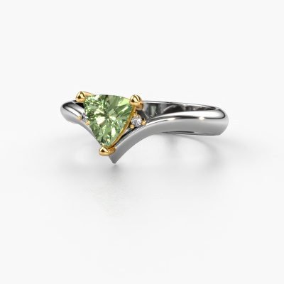 Arlette est le nom que nous avons donné à cette bague. Cette bague forgée en or blanc 14 Carat est sertie d'un diamants synthétiques vert. Vous recherchez une Bague forgée en or blanc unique et avec un look modernes ? Voici donc une belle bague que vous pouvez aussi ajuster à votre goût. Parfait donc pour une femmes contemporaine et modernes ! Un magnifique diamants synthétiques vert est serti dans cette bague spéciales. Celui-ci est sélectionné avec soin, car seules les plus belles pierres précieuses de votre bague peuvent la faire briller. Notre orfèvre fabrique votre bague dans notre propre atelier et place le diamants synthétiques vert dans l'anneau avec une précision extrême. Donc, il est travaillé et poli jusqu'à ce que le résultat soit visible : la bague parfaite !