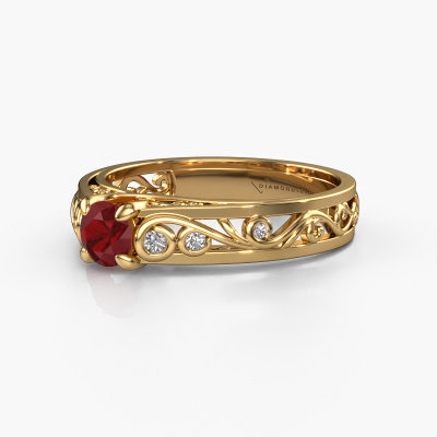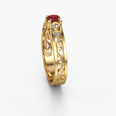 Votre attention est-elle toujours attirée par les articles vintage ? Vous pouvez donc être sûre que cette bague forgée en or jaune vous ira bien ! C'est un nouveau modèle, basé sur des motifs vintage. Un peu de rêve, un beau design ! Surtout si vous l'ajustez encore plus à votre goût. De magnifiques rubis sont utilisés dans cette bague spéciales. Comme vous pouvez le constater, vous pouvez choisir une pierre précieuse qui convient à votre style. Chaque pierre précieuse est soigneusement sélectionnée dans le monde entier par nos commerçants. Notre orfèvre ne veut utiliser que les plus belles pierres précieuses sur un bijou. Après tout, c'est la couronne de son travail ! Nos orfèvres fabriquent votre bague sur mesure, à votre goût et avec beaucoup de passion et de soin. Le or jaune bague comme indiqué ici peut être ajusté à votre guise avec l'outil de configuration. Si vous avez des idées que vous ne pouvez pas appliquer avec l'outil de configuration, vous pouvez toujours les partager à nos créateurs de bijoux. Vous pouvez bien sûr toujours nous poser des questions.En combinant les dernières techniques modernes, associées à une fabrication ancienne, nous sommes en mesure de fabriquer nos bagues dans notre propre studio. Chaque bijou est fabriqué sur commande. Ceci est avantageux car nous sommes en mesure de vous proposer un prix que vous ne trouverez nulle part ailleurs.Pour vous faciliter la tâche, vous pouvez facilement nous retourner tout bijou commandé dans les 30 jours suivant la livraison.Voulez-vous plus d'informations sur la bague entourage Quinty ? Jetez un coup d'œil à notre foire aux questions. Bien sûr, vous pouvez toujours contacter notre équipe d'orfèvres passionnés. Nous aimerions créer les bijoux de vos rêves !