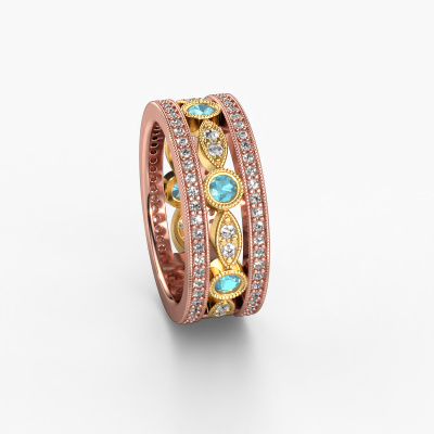 Votre attention est-elle toujours attirée par les articles vintage ? Vous pouvez donc être sûre que cette bague forgée en or rose vous ira bien ! C'est un nouveau modèle, basé sur des motifs vintage. Un peu de rêve, un beau design ! Surtout si vous l'ajustez encore plus à votre goût. De magnifiques topaze bleue sont utilisés dans cette bague spéciales. Comme vous pouvez le constater, vous pouvez choisir une pierre précieuse qui convient à votre style. Chaque pierre précieuse est soigneusement sélectionnée dans le monde entier par nos commerçants. Notre orfèvre ne veut utiliser que les plus belles pierres précieuses sur un bijou. Après tout, c'est la couronne de son travail ! Nos orfèvres fabriquent votre bague sur mesure, à votre goût et avec beaucoup de passion et de soin. Le or rose bague comme indiqué ici peut être ajusté à votre guise avec l'outil de configuration. Si vous avez des idées que vous ne pouvez pas appliquer avec l'outil de configuration, vous pouvez toujours les partager à nos créateurs de bijoux. Vous pouvez bien sûr toujours nous poser des questions.Puisque nous concevons et livrons nos propres bijoux, nous sommes en mesure de vous proposer une bague à un prix que vous ne pourrez pas trouver ailleurs. Une alliance est fabriquée sur commande, ce qui permet d'éviter les excédents de matériel et nous permet de vous proposer une superbe offre de prix. Nous comprenons qu'acheter votre bague en ligne soit un risque, mais nous vous assistons volontiers dans le processus de conception, en tenant compte de votre budget.Pour vous faciliter la tâche, vous pouvez facilement nous retourner tout bijou commandé dans les 30 jours suivant la livraison.Voulez-vous plus d'informations sur la bague entourage Jessica ? Jetez un coup d'œil à notre foire aux questions. Bien sûr, vous pouvez toujours contacter notre équipe d'orfèvres passionnés. Nous aimerions créer les bijoux de vos rêves !