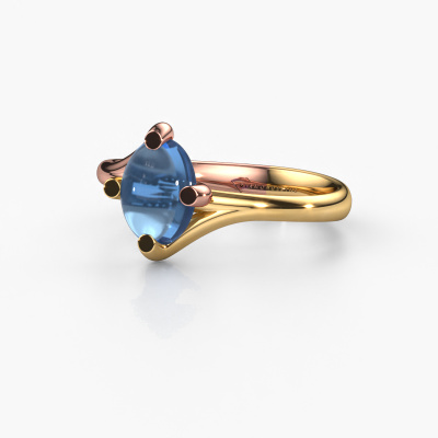 Sur la photo, vous pouvez voir la bague forgée en or rose Nora avec un cabochon topaze bleue. Cabochon signifie que le topaze bleue est d'abord affûté en une forme spécifique, telle que la forme d'une goutte, d'un cœur ou une forme cabochon ovale. Puis que des couches sont coupées du haut de la pierre jusqu'à ce que la pierre ait une belle forme convexe. Un bijou avec une pierre précieuse taillée en cabochon est magnifique, attire élégamment tous les regards et correspond parfaitement à un style tendances et plus encore à un style vintage. Votre bague élégants est finalisée dans les moindres détails par nos orfèvres jusqu'à la création de votre bague unique, dans laquelle le topaze bleue cabochon prend tout son sens. Que pensez-vous de cette bague tendances en or rose ? Vous pouvez créer cette bague via notre configurateur. Votre bague personnelle est par la suite fabriquée à la main par nos orfèvres. Le choix du métal précieux et des pierres précieuses peut être entièrement personnalisé. Avez-vous certaines idées pour votre bague, mais vous ne pouvez pas trouver nos options qui leur correspondent ? Alors faites-nous le savoir. Nous fabriquons votre bague personnelle entièrement selon vos souhaits. Vous pouvez également graver votre bague. DiamondsByMe se fera un plaisir de le faire pour vous ! En combinant les dernières techniques modernes, associées à une fabrication ancienne, nous sommes en mesure de fabriquer nos bagues dans notre propre studio. Chaque bijou est fabriqué sur commande. Ceci est avantageux car nous sommes en mesure de vous proposer un prix que vous ne trouverez nulle part ailleurs.Pour vous faciliter la tâche, vous pouvez facilement nous retourner tout bijou commandé dans les 30 jours suivant la livraison. Vous pouvez bien entendu toujours nous contacter si vous avez besoin de notre aide pour créer votre bague personnelle Nora élégants !