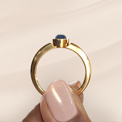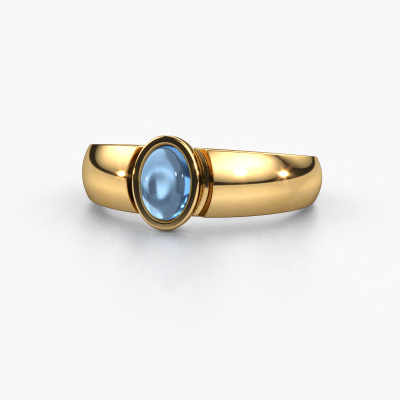 Sur la photo, vous pouvez voir la bague forgée en or jaune Tonneke avec un cabochon topaze bleue. Cabochon signifie que le topaze bleue est d'abord affûté en une forme spécifique, telle que la forme d'une goutte, d'un cœur ou une forme cabochon ovale. Puis que des couches sont coupées du haut de la pierre jusqu'à ce que la pierre ait une belle forme convexe. Un bijou avec une pierre précieuse taillée en cabochon est magnifique, attire élégamment tous les regards et correspond parfaitement à un style modernes et plus encore à un style vintage. Votre bague de bon goût est finalisée dans les moindres détails par nos orfèvres jusqu'à la création de votre bague unique, dans laquelle le topaze bleue cabochon prend tout son sens. Une bague sur mesure modernes et gracieuse est le cadeau parfait ! De nouveaux designs exquis sont ajoutés quotidiennement par notre équipe d'orfèvres passionnés. Et chaque design peut être personnalisé. Personnalisez simplement les métaux précieux et la couleur des pierres précieuses qui seront utilisées, par exemple. Cela rendra votre design de bague modernes Tonneke vraiment unique ! Vous pouvez également graver votre bague. DiamondsByMe se fera un plaisir de le faire pour vous ! Puisque nous concevons et livrons nos propres bijoux, nous sommes en mesure de vous proposer une bague à un prix que vous ne pourrez pas trouver ailleurs. Une alliance est fabriquée sur commande, ce qui permet d'éviter les excédents de matériel et nous permet de vous proposer une superbe offre de prix. Nous comprenons qu'acheter votre bague en ligne soit un risque, mais nous vous assistons volontiers dans le processus de conception, en tenant compte de votre budget.Pour vous faciliter la tâche, vous pouvez facilement nous retourner tout bijou commandé dans les 30 jours suivant la livraison. Vous pouvez bien entendu toujours nous contacter si vous avez besoin de notre aide pour créer votre bague personnelle Tonneke de bon goût !