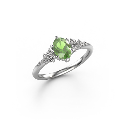 Voulez-vous une bague magnifique et spéciales pour femmes avec une seule pierre précieuse pour attirer tous les regards ? Que pensez-vous de cette bague Royce OVL ? La bague Royce OVL montrée ici est forgée en platine avec un beau vert