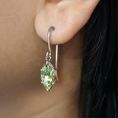 Qu’y a-t-il de plus féminin qu'une paire de belles pendants d'oreilles ? Avec ces pendants d'oreilles Laurie MRQ 1 forgées en platine, vous avez la possibilité d’attirer tous les regards. Ces pendants d'oreilles abordables sont serties d'un diamants synthétiques vert marquise. Nous avons un contact très proches avec nos fournisseurs de pierres précieuses, qui choisissent les pierres précieuses avec le plus grand soin. Nos orfèvres fabriqueront Donc vos pendants d'oreilles à la main dans notre propre atelier. Le meilleur cadeau que vous puissiez vous offrir est un ensemble de pendants d'oreilles à la mode que vous avez vous-même créées. Et elles seront ensuite fabriquées à la main par nos soins. Pour chaque modèle, vous pouvez choisir vos propres métaux précieux et pierres précieuses. De cette façon, vous obtiendrez une paire de pendants d'oreilles uniques. Cet ensemble de pendants d'oreilles peut être assemblé de différentes manières. Est-ce que ce design est pour vous, mais voulez-vous changer quelque chose ? Par exemple, l'utilisation d'une pierre précieuse qui n'est pas proposée en option avec ces boucles d'oreilles via le site Web. Si c'est le cas vous pouvez toujours nous contacter. Nous serions ravis de vous aider avec la conception de vos pendants d'oreilles à la mode. Les Laurie MRQ 1 sont fabriquées avec passion et amour par l'un de nos maîtres orfèvres.Avec beaucoup de passion, nos orfèvres se mettent au travail avec votre pendants d'oreilles dans notre atelier dès que vous l'avez commandée. Parce que nous ne gardons pas de bijoux en stock, nous ne devons pas inclure le coût de l'inventaire dans le prix. Et cela se reflète dans le prix de nos bijoux ! Nous sommes heureux de vous donner la garantie du meilleur prix.Pour vous faciliter la tâche, vous pouvez facilement nous retourner tout bijou commandé dans les 30 jours suivant la livraison. Si certaines informations ne sont pas claires, ou si vous avez besoin d’aide pour assembler vos pendants d'oreilles Laurie MRQ 1, n’hésitez surtout pas à nous contacter !