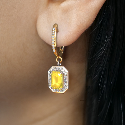Chaque femme peut choisir d’attirer les regards grâce à une paire de pendants d'oreilles uniques ? Chez DiamondsByMe, nous créons des bijoux exclusives et larges, et nous utilisons les meilleurs métaux précieux et les meilleures pierres précieuses. Ces pendants d'oreilles uniques forgée en or blanc sont un exemple de véritable savoir-faire artisanal ! Tous les petits détails ont été fabriqués avec beaucoup de patience et de passion par notre orfèvre. Ce métier nécessite un œil expert et une main habile pour assembler cette pendant d'oreille avec la plus grande précision. Et c'est précisément ce qui enthousiasme nos orfèvres ! Les plus beaux saphirs jaunes sont sertis de manière large, de telle sorte qu'ils soient encore plus spectaculaires. Cela donne aux pendants d'oreilles un attrait supplémentaire. Ci-dessus sont des pendants d'oreilles Dodie 2 forgées en or blanc et serties d'un saphir jaune taille émeraude. Les Dodie 2 sont fabriquées spécialement pour vous par nos maîtres orfèvres dans notre propre atelier.. Que pensez-vous de ces pendants d'oreilles exclusives en or blanc? Personnalisez simplement ces pendants d'oreilles Dodie 2 à l'aide de notre outil en ligne. Par la suite, vos halo pendants d'oreilles Dodie 2 seront confectionnées à la main par nos orfèvres. Les métaux précieux et les pierres précieuses peuvent être personnalisés à votre guise. Avez-vous des préférences spécifiques qui ne sont pas disponibles dans notre outil en ligne ? N'hésitez pas à nous contacter. Nous personnaliserons vos pendants d'oreilles exclusives selon vos goûts.Devez-vous respecter un certain budget ? N'hésitez pas à nous contacter, nous serons heureux de vous conseiller sur toutes les possibilités. Dans tous les cas, nous offrons toutes les pendants d'oreilles à un prix que vous ne trouverez nulle part ailleurs, car nous ne fabriquerons la bague uniquement lorsque vous la commanderez. Cela nous permet de vous donner la garantie du meilleur prix.Pour vous faciliter la tâche, vous pouvez facilement nous retourner tout bijou commandé dans les 30 jours suivant la livraison. Avez-vous des questions, ou aimeriez-vous avoir de l’aide pour assembler vos pendants d'oreilles Halo Dodie 2 ? N'hésitez pas à contacter notre équipe d'employés passionnés. Nous serons heureux de vous aider !
