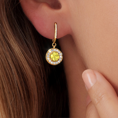 Chaque femme peut choisir d’attirer les regards grâce à une paire de pendants d'oreilles uniques ? Chez DiamondsByMe, nous créons des bijoux exclusives et larges, et nous utilisons les meilleurs métaux précieux et les meilleures pierres précieuses. Ces pendants d'oreilles uniques forgée en or jaune sont un exemple de véritable savoir-faire artisanal ! Tous les petits détails ont été fabriqués avec beaucoup de patience et de passion par notre orfèvre. Ce métier nécessite un œil expert et une main habile pour assembler cette pendant d'oreille avec la plus grande précision. Et c'est précisément ce qui enthousiasme nos orfèvres ! Les plus beaux diamants synthétiques jaune sont sertis de manière large, de telle sorte qu'ils soient encore plus spectaculaires. Cela donne aux pendants d'oreilles un attrait supplémentaire. Ci-dessus sont des pendants d'oreilles Ninette 2 forgées en or jaune et serties d'un diamants synthétiques jaune ronds. Les Ninette 2 sont uniques, car vous pouvez concevoir ces boucles d'oreilles en fonction de vos souhaits.. Que pensez-vous de ces pendants d'oreilles exclusives en or jaune? Personnalisez simplement ces pendants d'oreilles Ninette 2 à l'aide de notre outil en ligne. Par la suite, vos halo pendants d'oreilles Ninette 2 seront confectionnées à la main par nos orfèvres. Les métaux précieux et les pierres précieuses peuvent être personnalisés à votre guise. Avez-vous des préférences spécifiques qui ne sont pas disponibles dans notre outil en ligne ? N'hésitez pas à nous contacter. Nous personnaliserons vos pendants d'oreilles exclusives selon vos goûts.Puisque nous concevons et livrons nos propres pendants d'oreilles, nous sommes en mesure de vous proposer pendants d'oreilles à un prix que vous ne pourrez pas trouver ailleurs. Pendants d'oreilles est fabriquée sur commande, ce qui permet d'éviter les excédents de matériel et nous permet de vous proposer une superbe offre de prix. Nous comprenons qu'acheter votre pendants d'oreilles en ligne soit un risque, mais nous vous assistons volontiers dans le processus de conception, en tenant compte de votre budget.Pour vous faciliter la tâche, vous pouvez facilement nous retourner tout bijou commandé dans les 30 jours suivant la livraison. Avez-vous des questions, ou aimeriez-vous avoir de l’aide pour assembler vos pendants d'oreilles Halo Ninette 2 ? N'hésitez pas à contacter notre équipe d'employés passionnés. Nous serons heureux de vous aider !