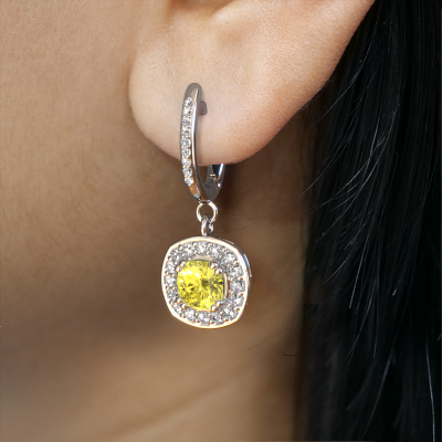Chaque femme peut choisir d’attirer les regards grâce à une paire de pendants d'oreilles uniques ? Chez DiamondsByMe, nous créons des bijoux exclusives et larges, et nous utilisons les meilleurs métaux précieux et les meilleures pierres précieuses. Ces pendants d'oreilles uniques forgée en platine sont un exemple de véritable savoir-faire artisanal ! Tous les petits détails ont été fabriqués avec beaucoup de patience et de passion par notre orfèvre. Ce métier nécessite un œil expert et une main habile pour assembler cette pendant d'oreille avec la plus grande précision. Et c'est précisément ce qui enthousiasme nos orfèvres ! Les plus beaux diamants synthétiques jaune sont sertis de manière large, de telle sorte qu'ils soient encore plus spectaculaires. Cela donne aux pendants d'oreilles un attrait supplémentaire. Ci-dessus sont des pendants d'oreilles Marlotte 2 forgées en platine et serties d'un diamants synthétiques jaune coussin. Les Marlotte 2 sont uniques, car vous pouvez concevoir ces boucles d'oreilles en fonction de vos souhaits.. Quoi de plus beau que des pendants d'oreilles exclusives, véritablement créées à la main par vos soins ? N'hésitez surtout pas à personnaliser chaque modèle en choisissant différents métaux précieux et pierres précieuses. Ces pendants d'oreilles peuvent être personnalisées à votre goût. Il va sans dire que vous pouvez également nous demander de l'aide. Nous sommes plus que disposés à vous aider à concevoir votre pendants d'oreilles exclusives. Si vous aimez la pendants d'oreilles mais vous avez encore des souhaits spécifiques concernant la personnalisation de votre design, tels que l’ajout d’une pierre précieuse qui n’est pas mentionnée dans la liste, n'hésitez pas à nous contacter. Nous vous informerons volontiers sur les différentes options.Nos orfèvres ne fabriquent que vos pendants d'oreilles Marlotte 2 une fois que vous les aurez commandées. Nous ne gardons pas de stocks. L'avantage de ne pas garder de stock est que nous n'avons pas à inclure les frais de stockage dans le prix, et pouvons donc délivrer des bijoux à un prix très bas.Pour vous faciliter la tâche, vous pouvez facilement nous retourner tout bijou commandé dans les 30 jours suivant la livraison. Avez-vous des questions, ou aimeriez-vous avoir de l’aide pour assembler vos pendants d'oreilles Halo Marlotte 2 ? N'hésitez pas à contacter notre équipe d'employés passionnés. Nous serons heureux de vous aider !