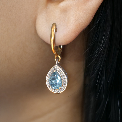 Chaque femme peut choisir d’attirer les regards grâce à une paire de pendants d'oreilles uniques ? Chez DiamondsByMe, nous créons des bijoux uniques et larges, et nous utilisons les meilleurs métaux précieux et les meilleures pierres précieuses. Ces pendants d'oreilles uniques forgée en or blanc sont un exemple de véritable savoir-faire artisanal ! Tous les petits détails ont été fabriqués avec beaucoup de patience et de passion par notre orfèvre. Ce métier nécessite un œil expert et une main habile pour assembler cette pendant d'oreille avec la plus grande précision. Et c'est précisément ce qui enthousiasme nos orfèvres ! Les plus beaux diamant synthétique bleu sont sertis de manière large, de telle sorte qu'ils soient encore plus spectaculaires. Cela donne aux pendants d'oreilles un attrait supplémentaire. Ci-dessus sont des pendants d'oreilles Ginger 1 forgées en or blanc et serties d'un diamant synthétique bleu poire. Les Ginger 1 sont fabriquées spécialement pour vous par nos maîtres orfèvres dans notre propre atelier.. Le meilleur cadeau que vous puissiez vous offrir est un ensemble de pendants d'oreilles uniques que vous avez vous-même créées. Et elles seront ensuite fabriquées à la main par nos soins. Pour chaque modèle, vous pouvez choisir vos propres métaux précieux et pierres précieuses. De cette façon, vous obtiendrez une paire de pendants d'oreilles uniques. Cet ensemble de pendants d'oreilles peut être assemblé de différentes manières. Est-ce que ce design est pour vous, mais voulez-vous changer quelque chose ? Par exemple, l'utilisation d'une pierre précieuse qui n'est pas proposée en option avec ces boucles d'oreilles via le site Web. Si c'est le cas vous pouvez toujours nous contacter. Nous serions ravis de vous aider avec la conception de vos pendants d'oreilles uniques.Avec beaucoup de passion, nos orfèvres se mettent au travail avec votre pendants d'oreilles dans notre atelier dès que vous l'avez commandée. Parce que nous ne gardons pas de bijoux en stock, nous ne devons pas inclure le coût de l'inventaire dans le prix. Et cela se reflète dans le prix de nos bijoux ! Nous sommes heureux de vous donner la garantie du meilleur prix.Pour vous faciliter la tâche, vous pouvez facilement nous retourner tout bijou commandé dans les 30 jours suivant la livraison. Avez-vous des questions, ou aimeriez-vous avoir de l’aide pour assembler vos pendants d'oreilles élégante Ginger 1 ? N'hésitez pas à contacter notre équipe d'employés passionnés. Nous serons heureux de vous aider !