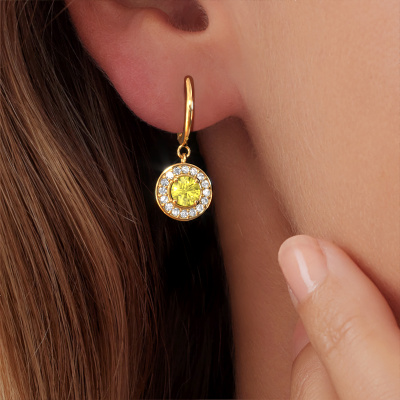 Chaque femme peut choisir d’attirer les regards grâce à une paire de pendants d'oreilles uniques ? Chez DiamondsByMe, nous créons des bijoux design et larges, et nous utilisons les meilleurs métaux précieux et les meilleures pierres précieuses. Ces pendants d'oreilles uniques forgée en or jaune sont un exemple de véritable savoir-faire artisanal ! Tous les petits détails ont été fabriqués avec beaucoup de patience et de passion par notre orfèvre. Ce métier nécessite un œil expert et une main habile pour assembler cette pendant d'oreille avec la plus grande précision. Et c'est précisément ce qui enthousiasme nos orfèvres ! Les plus beaux diamants synthétiques jaune sont sertis de manière large, de telle sorte qu'ils soient encore plus spectaculaires. Cela donne aux pendants d'oreilles un attrait supplémentaire. Ci-dessus sont des pendants d'oreilles Ninette 1 forgées en or jaune et serties d'un diamants synthétiques jaune ronds. Les Ninette 1 sont fabriquées spécialement pour vous par nos maîtres orfèvres dans notre propre atelier.. Nos orfèvres créent vos pendants d'oreilles, personnalisées à votre goût, avec la plus grande attention. Les pendants d'oreilles en or blanc, illustrées ici, peuvent être personnalisées à l'aide de notre outil en ligne. Choisissez vos propres pierres précieuses pour représenter votre amour.Nos orfèvres ne fabriquent que vos pendants d'oreilles Ninette 1 une fois que vous les aurez commandées. Nous ne gardons pas de stocks. L'avantage de ne pas garder de stock est que nous n'avons pas à inclure les frais de stockage dans le prix, et pouvons donc délivrer des bijoux à un prix très bas.Pour vous faciliter la tâche, vous pouvez facilement nous retourner tout bijou commandé dans les 30 jours suivant la livraison. Avez-vous des questions, ou aimeriez-vous avoir de l’aide pour assembler vos pendants d'oreilles Halo Ninette 1 ? N'hésitez pas à contacter notre équipe d'employés passionnés. Nous serons heureux de vous aider !