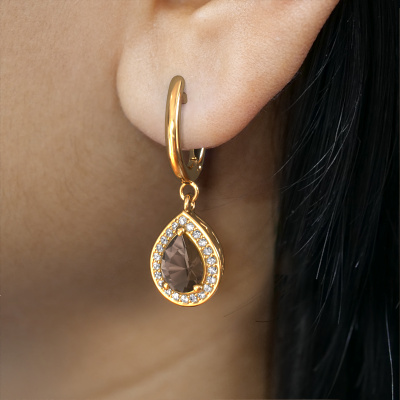 Chaque femme peut choisir d’attirer les regards grâce à une paire de pendants d'oreilles uniques ? Chez DiamondsByMe, nous créons des bijoux uniques et larges, et nous utilisons les meilleurs métaux précieux et les meilleures pierres précieuses. Ces pendants d'oreilles uniques forgée en or jaune sont un exemple de véritable savoir-faire artisanal ! Tous les petits détails ont été fabriqués avec beaucoup de patience et de passion par notre orfèvre. Ce métier nécessite un œil expert et une main habile pour assembler cette pendant d'oreille avec la plus grande précision. Et c'est précisément ce qui enthousiasme nos orfèvres ! Les plus beaux quartz fumé sont sertis de manière large, de telle sorte qu'ils soient encore plus spectaculaires. Cela donne aux pendants d'oreilles un attrait supplémentaire. Ci-dessus sont des pendants d'oreilles Ginger 1 forgées en or jaune et serties d'un quartz fumé poire. Les Ginger 1 sont fabriquées spécialement pour vous par nos maîtres orfèvres dans notre propre atelier.. Le meilleur cadeau que vous puissiez vous offrir est un ensemble de pendants d'oreilles uniques que vous avez vous-même créées. Et elles seront ensuite fabriquées à la main par nos soins. Pour chaque modèle, vous pouvez choisir vos propres métaux précieux et pierres précieuses. De cette façon, vous obtiendrez une paire de pendants d'oreilles uniques. Cet ensemble de pendants d'oreilles peut être assemblé de différentes manières. Est-ce que ce design est pour vous, mais voulez-vous changer quelque chose ? Par exemple, l'utilisation d'une pierre précieuse qui n'est pas proposée en option avec ces boucles d'oreilles via le site Web. Si c'est le cas vous pouvez toujours nous contacter. Nous serions ravis de vous aider avec la conception de vos pendants d'oreilles uniques.Avec beaucoup de passion, nos orfèvres se mettent au travail avec votre pendants d'oreilles dans notre atelier dès que vous l'avez commandée. Parce que nous ne gardons pas de bijoux en stock, nous ne devons pas inclure le coût de l'inventaire dans le prix. Et cela se reflète dans le prix de nos bijoux ! Nous sommes heureux de vous donner la garantie du meilleur prix.Pour vous faciliter la tâche, vous pouvez facilement nous retourner tout bijou commandé dans les 30 jours suivant la livraison. Avez-vous des questions, ou aimeriez-vous avoir de l’aide pour assembler vos pendants d'oreilles élégante Ginger 1 ? N'hésitez pas à contacter notre équipe d'employés passionnés. Nous serons heureux de vous aider !