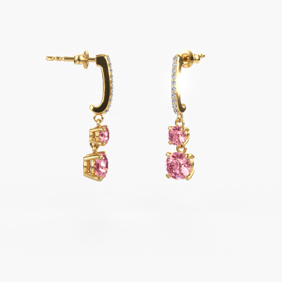 Qu’y a-t-il de plus féminin qu'une paire de belles pendants d'oreilles ? Avec ces pendants d'oreilles Tanja 2 forgées en or jaune, vous avez la possibilité d’attirer tous les regards. Ces pendants d'oreilles pendants sont serties d'un diamant synthétique roze ronds. Nous avons un contact très proches avec nos fournisseurs de pierres précieuses, qui choisissent les pierres précieuses avec le plus grand soin. Nos orfèvres fabriqueront Donc vos pendants d'oreilles à la main dans notre propre atelier.