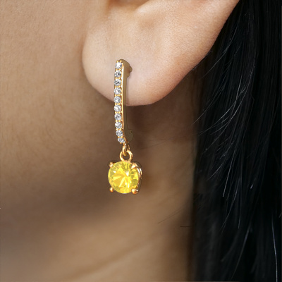 Chaque femme peut choisir d’attirer les regards grâce à une paire de pendants d'oreilles uniques ? Chez DiamondsByMe, nous créons des bijoux modernes et larges, et nous utilisons les meilleurs métaux précieux et les meilleures pierres précieuses. Ces pendants d'oreilles uniques forgée en or jaune sont un exemple de véritable savoir-faire artisanal ! Tous les petits détails ont été fabriqués avec beaucoup de patience et de passion par notre orfèvre. Ce métier nécessite un œil expert et une main habile pour assembler cette pendant d'oreille avec la plus grande précision. Et c'est précisément ce qui enthousiasme nos orfèvres ! Les plus beaux saphirs jaunes sont sertis de manière large, de telle sorte qu'ils soient encore plus spectaculaires. Cela donne aux pendants d'oreilles un attrait supplémentaire. Ci-dessus sont des pendants d'oreilles Tanja 1 forgées en or jaune et serties d'un saphir jaune ronds. Les Tanja 1 sont fabriquées spécialement pour vous par nos maîtres orfèvres dans notre propre atelier.. Le meilleur cadeau que vous puissiez vous offrir est un ensemble de pendants d'oreilles modernes que vous avez vous-même créées. Et elles seront ensuite fabriquées à la main par nos soins. Pour chaque modèle, vous pouvez choisir vos propres métaux précieux et pierres précieuses. De cette façon, vous obtiendrez une paire de pendants d'oreilles uniques. Cet ensemble de pendants d'oreilles peut être assemblé de différentes manières. Est-ce que ce design est pour vous, mais voulez-vous changer quelque chose ? Par exemple, l'utilisation d'une pierre précieuse qui n'est pas proposée en option avec ces boucles d'oreilles via le site Web. Si c'est le cas vous pouvez toujours nous contacter. Nous serions ravis de vous aider avec la conception de vos pendants d'oreilles modernes.Puisque nous concevons et livrons nos propres pendants d'oreilles, nous sommes en mesure de vous proposer pendants d'oreilles à un prix que vous ne pourrez pas trouver ailleurs. Pendants d'oreilles est fabriquée sur commande, ce qui permet d'éviter les excédents de matériel et nous permet de vous proposer une superbe offre de prix. Nous comprenons qu'acheter votre pendants d'oreilles en ligne soit un risque, mais nous vous assistons volontiers dans le processus de conception, en tenant compte de votre budget.Pour vous faciliter la tâche, vous pouvez facilement nous retourner tout bijou commandé dans les 30 jours suivant la livraison. Avez-vous des questions, ou aimeriez-vous avoir de l’aide pour assembler vos pendants d'oreilles Solitaire Tanja 1 ? N'hésitez pas à contacter notre équipe d'employés passionnés. Nous serons heureux de vous aider !