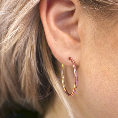 Cet ensemble de créoles meilleurs prix Sina 35mm est composé de magnifiques créoles avec lesquelles vous pourrez complétez votre look. Nos orfèvres combinent les techniques les plus modernes avec un vrai métier artisanal et fabriqueront vos créoles à la main dans notre propre atelier. Les saphirs roses choisis sont sertis dans les créoles avec la plus grande précision, afin que la lumière puisse y passer de manière optimale. Le résultat est de magnifiques créoles uniques ? parfaitement assorties à votre propre style ! Dans cet exemple, vous verrez des boucles d’oreilles forgée en or rose avec un saphir rose de 1.1 mm. Que pensez-vous de ces créoles luxes en or rose? Personnalisez simplement ces créoles Sina 35mm à l'aide de notre outil en ligne. Par la suite, vos meilleurs prix créoles Sina 35mm seront confectionnées à la main par nos orfèvres. Les métaux précieux et les pierres précieuses peuvent être personnalisés à votre guise. Avez-vous des préférences spécifiques qui ne sont pas disponibles dans notre outil en ligne ? N'hésitez pas à nous contacter. Nous personnaliserons vos créoles luxes selon vos goûts. Les Sina 35mm sont uniques, car vous pouvez concevoir ces boucles d'oreilles en fonction de vos souhaits.En utilisant nos techniques modernes, nous sommes en mesure de concevoir et de personnaliser les bijoux de la plus haute qualité avec le plus grand soin pour vous. Nos créoles ont toujours un prix inférieur de 30% à celles des autres bijoutiers. Nous fabriquons des créoles à la commande afin de ne pas avoir à garder un stock important. Si vous avez un certain budget, nous serons ravis de vous conseiller tout en le respectant. retour_long] Vous pouvez bien entendu nous poser vos questions sur les boucles d’oreilles Sina 35mm. Consultez notre foire aux questions ou contactez-nous directement. Notre équipe d'employés passionnés se fera un plaisir de vous aider !
