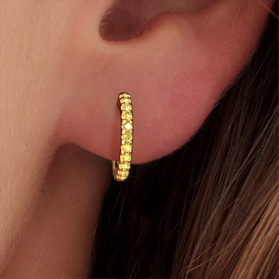 Un ensemble de créoles classiques assorties qui convient parfaitement à la femmes d'aujourd'hui. Vous pouvez trouver cet ensemble à DiamondsByMe. Nos orfèvres utilisent les meilleurs métaux précieux et les meilleures pierres précieuses pour vous confectionner les plus beaux bijoux. Comme ces classiques créoles Jackie 12.5 mm A forgées en or jaune serti d'un saphir jaune. Ces saphirs jaunes sont sélectionnés avec soin, car seuls les plus beaux saphirs jaunes peuvent briller sur vos boucles d’oreilles. Notre orfèvre fabrique vos créoles dans notre propre atelier et place chaque saphir jaune avec une précision extrême. Donc, le bijou est travaillé et polis jusqu'à ce que le résultat soit visible : des créoles parfaites ! Les Jackie 12.5 mm A sont fabriquées avec passion et amour par l'un de nos maîtres orfèvres.. Le meilleur cadeau que vous puissiez vous offrir est un ensemble de créoles classiques que vous avez vous-même créées. Et elles seront ensuite fabriquées à la main par nos soins. Pour chaque modèle, vous pouvez choisir vos propres métaux précieux et pierres précieuses. De cette façon, vous obtiendrez une paire de créoles uniques. Cet ensemble de créoles peut être assemblé de différentes manières. Est-ce que ce design est pour vous, mais voulez-vous changer quelque chose ? Par exemple, l'utilisation d'une pierre précieuse qui n'est pas proposée en option avec ces boucles d'oreilles via le site Web. Si c'est le cas vous pouvez toujours nous contacter. Nous serions ravis de vous aider avec la conception de vos créoles classiques.Avec beaucoup de passion, nos orfèvres se mettent au travail avec votre créoles dans notre atelier dès que vous l'avez commandée. Parce que nous ne gardons pas de bijoux en stock, nous ne devons pas inclure le coût de l'inventaire dans le prix. Et cela se reflète dans le prix de nos bijoux ! Nous sommes heureux de vous donner la garantie du meilleur prix.Pour vous faciliter la tâche, vous pouvez facilement nous retourner tout bijou commandé dans les 30 jours suivant la livraison. Vous souhaitez assembler vos créoles Jackie 12.5 mm A classiques, mais vous avez besoin d'aide pour cela ? Ou avez-vous d'autres questions ? Si c’est le case veuillez nous contacter. L'équipe par DiamondsByMe est prête pour vous aider avec des conseils appropriés.