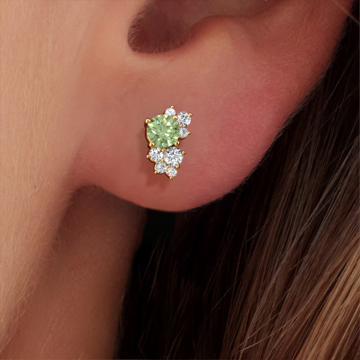 Comment décririez-vous votre style ? Aimez-vous quelque chose d'un peu différent que d'habitude ? Ces clous d'oreilles tendances forgée en or jaune sont uniques et conçues par nos créateurs de bijoux. Un diamants synthétiques vert est serti